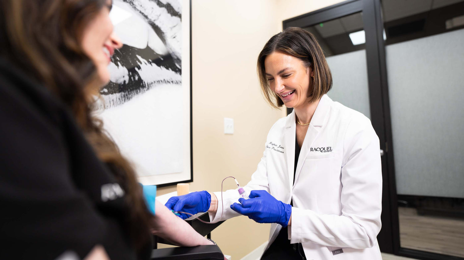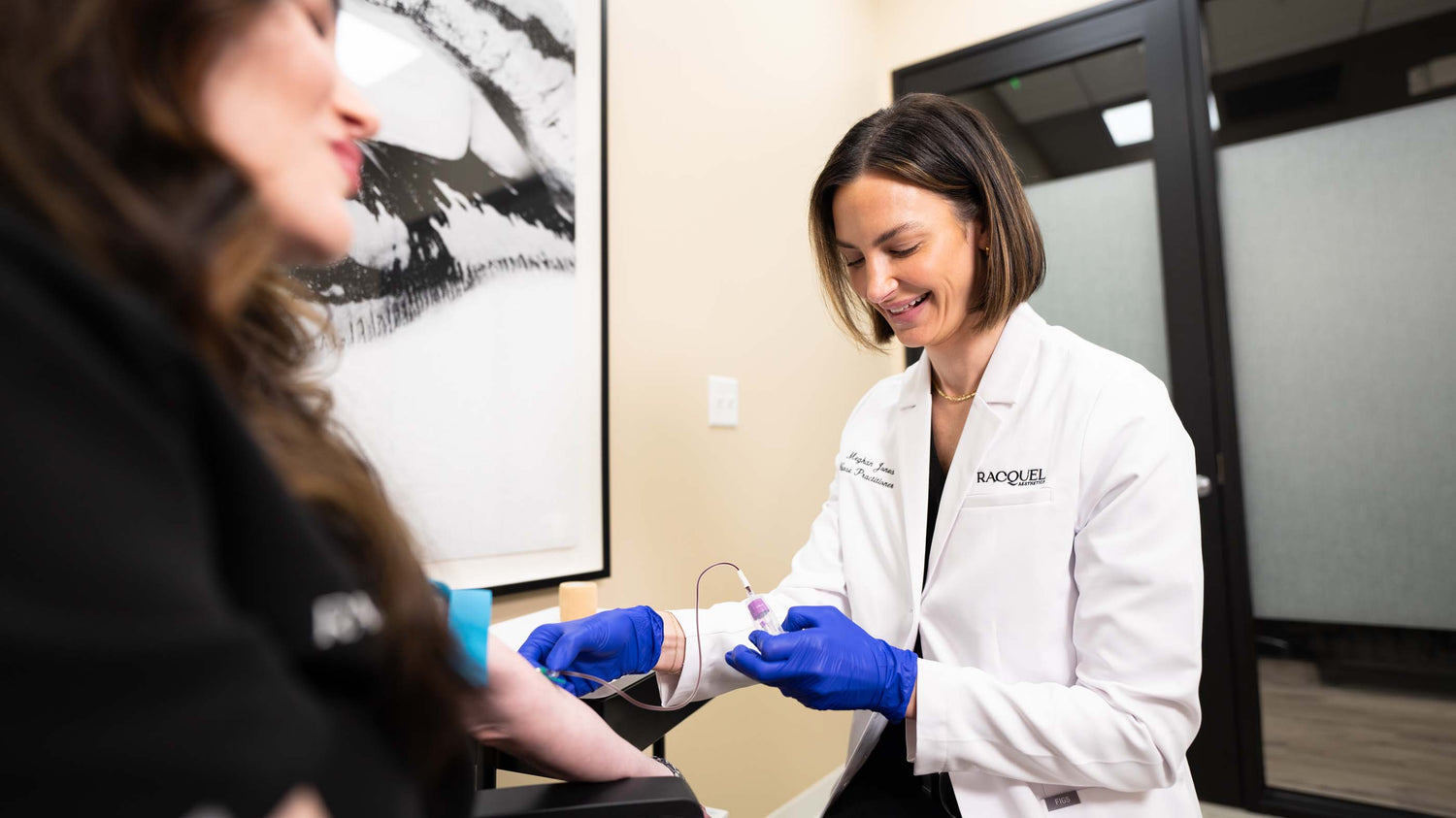 At Racquel Aesthetics & Wellness, we believe true wellness should feel as luxurious as it is transformative. Our exclusive IV lounge was designed to seamlessly blend aesthetic beauty with personalized wellness, offering a sophisticated, rejuvenating space where you can unwind while receiving curated IV therapy treatments. As a special benefit, RA Wellness members enjoy access to an expanded menu of advanced IV infusions tailored to individual health goals, prescribed by our Wellness Nurse Practitioners. From immune-boosting blends and performance recovery formulas to anti-aging infusions and cellular repair therapies, each treatment is designed to enhance vitality, restore balance, and optimize well-being. Our signature Racquel Aesthetics Immune Booster IV remains available to all patients, while Wellness members gain exclusive access to specialized IV therapies, vitamin injections, and evolving innovations in functional medicine. Whether you're seeking hydration, energy, or deep cellular rejuvenation, our IV lounge is an elevated experience designed to leave you feeling refreshed, revitalized, and truly cared for.